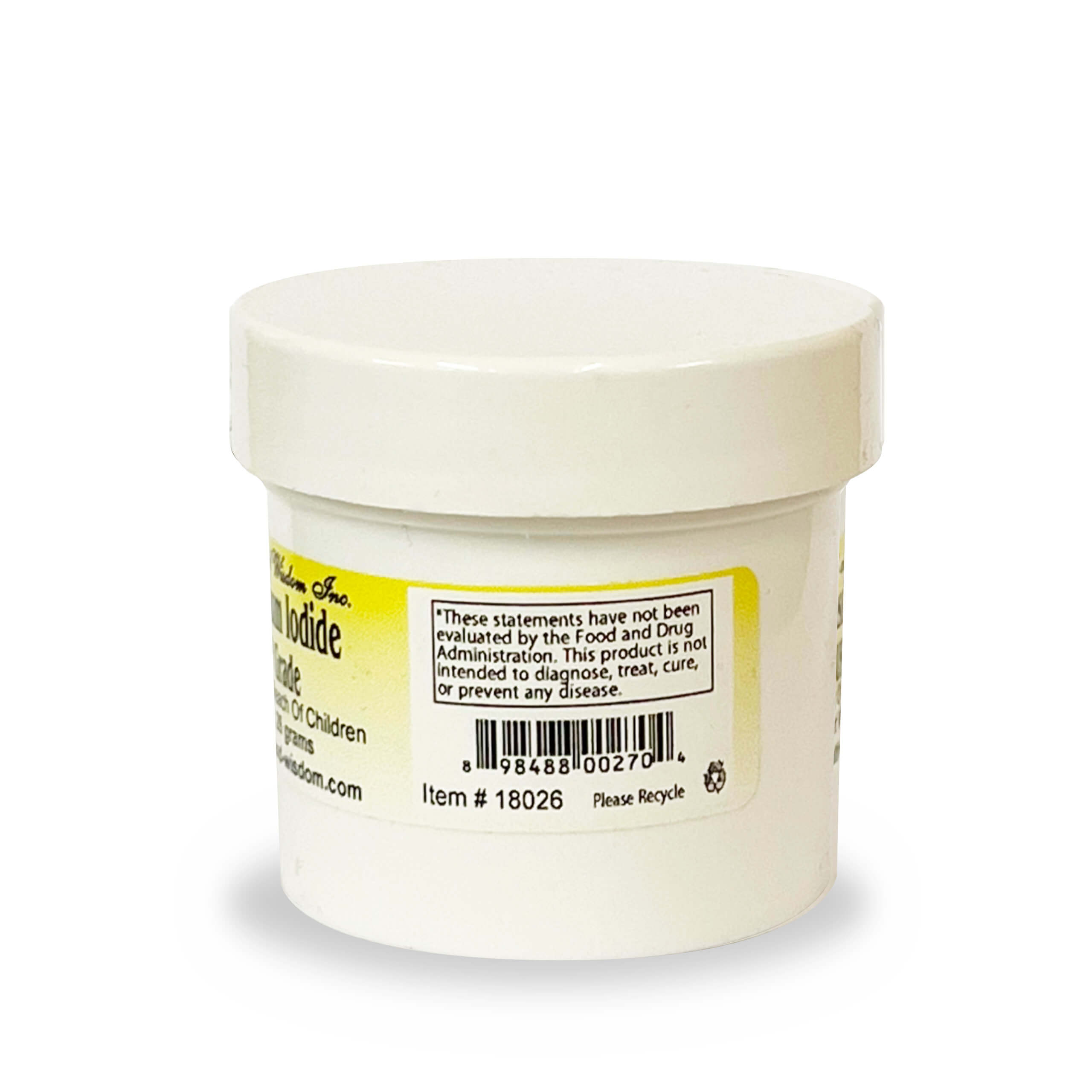 When diluted as instructed, Health and Wisdom’s Potassium Iodide USP makes a less than saturated Potassium Iodide solution. Using less than saturated Potassium Iodide (KI) solution provides more accurate dosages because there is more solution overall to be measured out per dose. For example, mixing and dissolving exactly 26 grams of Potassium Iodide USP into a one liter bottle of water produces 1000 ml of Potassium Iodide solution with a strength of 130 mg for each 5 ml (1 teaspoon) of that Potassium Iodide (KI) solution. There are 200 of those 5 ml servings in that 1000 ml (1 liter). Five ml can be easily and accurately measured out with a common graduated medicine dropper or one teaspoon.